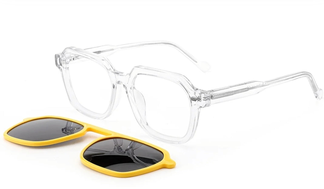 Upgrade your eyewear game with Wayne - the perfect glasses for any occasion. These stunning and vibrant eyeglasses come with a clip-on sunglasses feature for added versatility. Say goodbye to multiple pairs, and hello to effortless style and convenience. Order yours today!